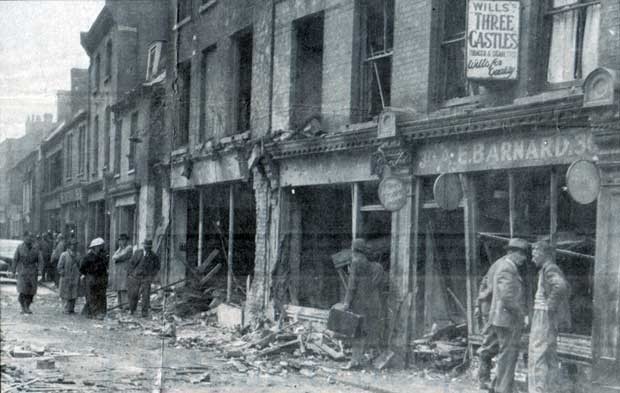 For us though, it’s the first bomb that’s the one that is forged by heat on the collective memory of the town. Reports say the fatal stick was made up of 500kg high explosive types. In any case, at around 9.57pm The Eagle received a direct hit. It is said the device penetrated the three storey building to the basement before taking the structure with it, including Limberts fish cafe next door and many of the surrounding shop fronts in Norfolk Street. The pictures below tell their own story, and materials held by The National Archives go into more detail, and they are reproduced below. In total, forty two names were added.