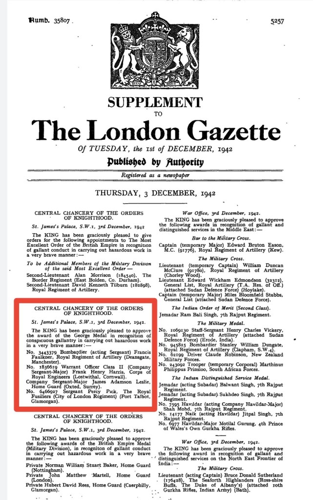 The most remarkable account I have come across is that of the actions of Acting Sergeant Francis Faulkner, who immediately went to the aid of those trapped in the devastated basement of The Eagle, spending some hours comforting those he found; in particular one woman who he sang to over a period of six hours. I wonder if it was Kathleen King that he comforted in her final hours as she lay trapped before succumbing to her injuries at 3.30am. As can be seen here, he was awarded the George Medal for his bravery. Incredible in the circumstances.