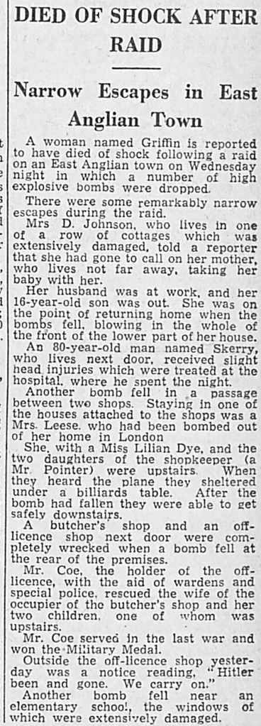 By my reckoning, Harry brings the total number of victims of aerial bombing in King’s Lynn to eighty over both wars.