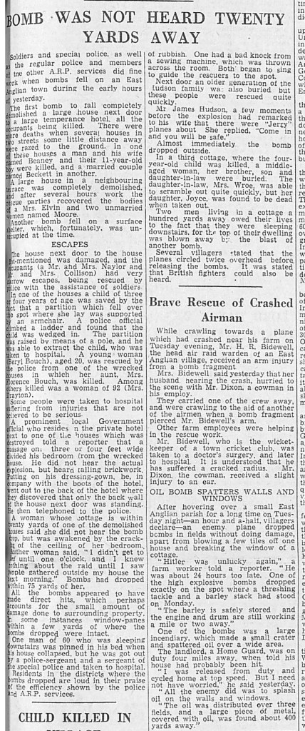 As can be seen from the Eastern Daily Press of the following day, reports were heavily censored, but the detail of the attack is clear.