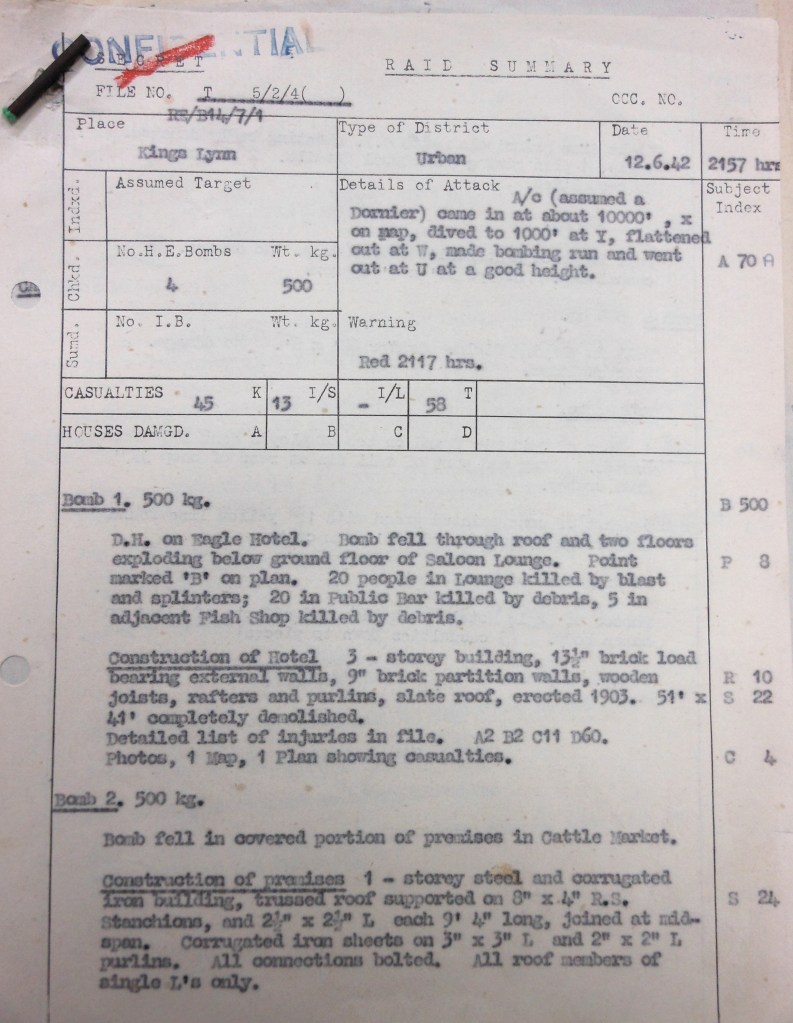 My interest began in the early 1980’s when I’d lived in the flat above Rowlinsons sports shop at 33 Norfolk Street, almost opposite The Eagle Hotel and Limberts chip shop, acutely aware that I lived between two former bomb craters in front and behind where I lived, and how significant that gap was one one particular evening in 1942. I used to park my car beside Paradise Lane, the link between Norfolk Street and the old cattle market, which became a killing field on that dreadful night. The Eagle especially is remembered in the history of Lynn for terrible reasons, and living opposite the rebuilt pub for a couple of years piqued my interest in the wartime tragedy that befell the place one midsummer evening in June 1942. But there is much more to tell than that one event.