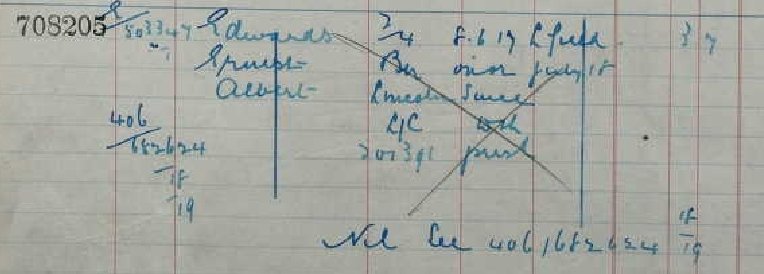 We’ll start with Ernest, because we know that he didn’t survive the war and it’s his death that is central to one of the tales. Sadly, we don’t have a picture of Ernest, and his service file didn’t survive the blitz of 1940, but the public record gives us some clues (and questions) about his war service.