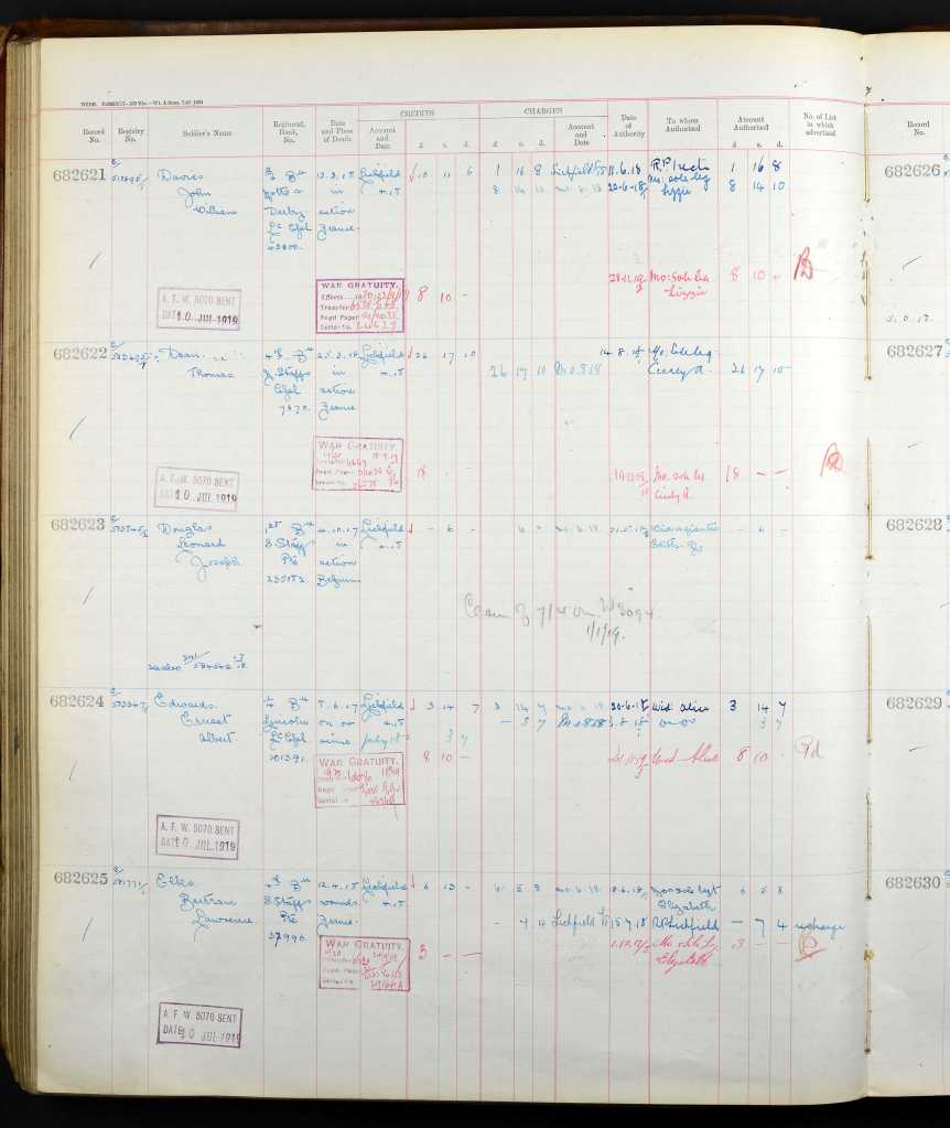 We can see from his papers that initially he was sent to Felixstowe and the 3rd Battalion Suffolk Regiment for basic training, but then quickly to 176th Machine Gun Company, Machine Gun Corps, at Aldershot, and that he entered the European theatre in France on 19th March 1917.