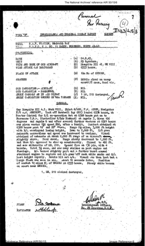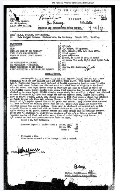 The National Archives provided a further insight into the crash with the combat report held at AIR50/200/109.