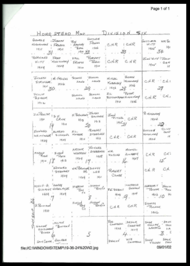 The above map and Homestead register shows Canada was divided up into a myriad of 160 acre squares, each allocated potentially to a single individual who had travelled from across the empire and Europe to start new lives. I know from the family tree, that family descendants from Norfolk eventually married Norwegians such was the diversity of the pioneer farmers that cleared the plains of central Canada.