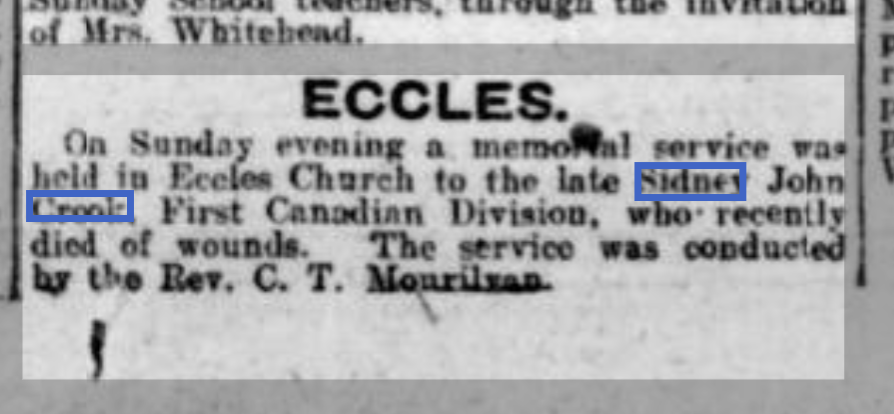 There’s no other reason for the picture to be in the family collection if it’s not one of the Crook boys, which relatives believe it is. If it’s earlier in the year it can only be Syd as he was the only brother in Canada.