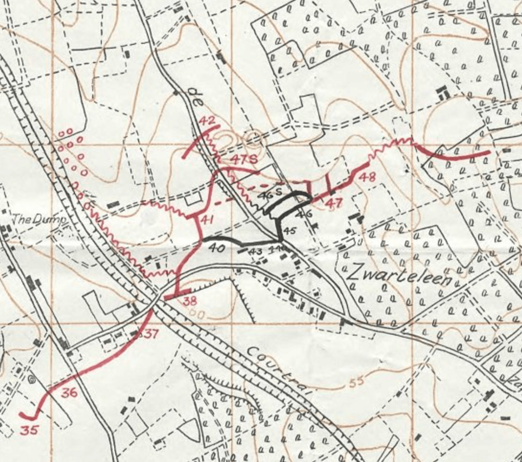 It’s in those terrifying moments during the bombardments on June 6th that I believe Sydney was mortally wounded. For those of you who know Hill 60 today, that ground is behind where the houses and Hill 60 café stand opposite. Below are maps that give an idea of what the ground looked like.