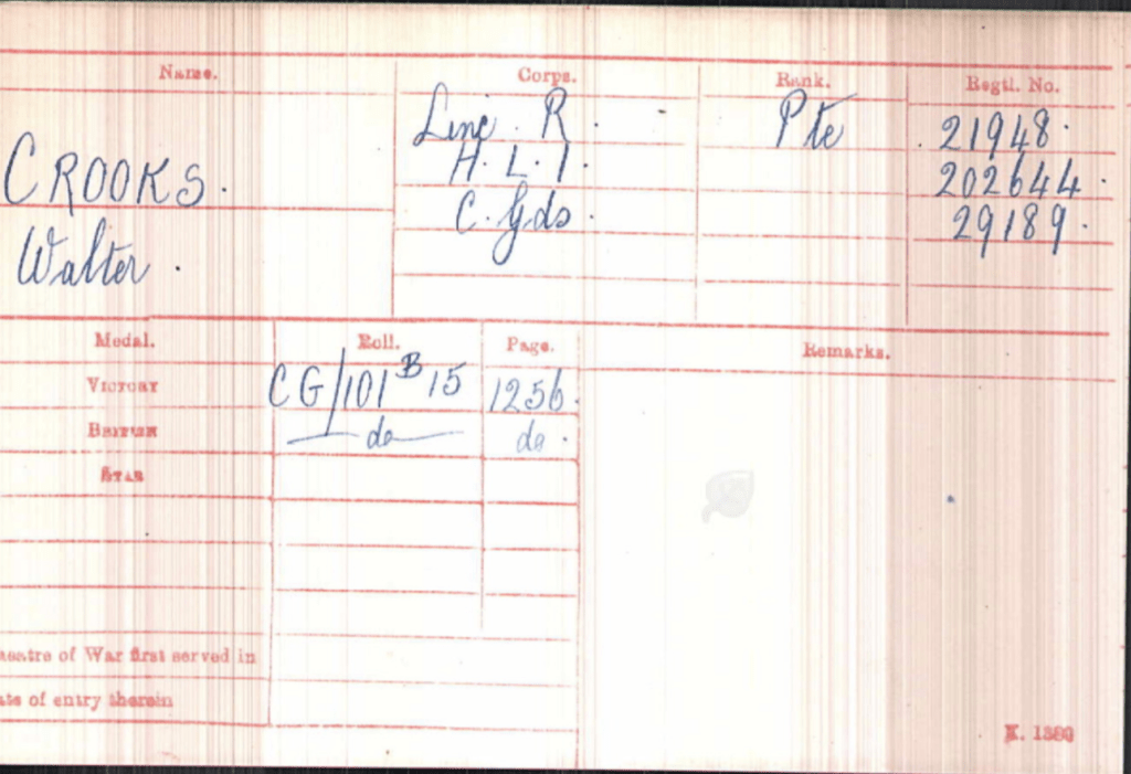 This is another unfinished corner of the family history, that I’ve mentioned before, but never yet got round to researching properly. It’s a brief biography of yet another of my grandfather’s older brothers, Walter Crooks, and another example of one of the brothers adding an ‘S’ to the surname.