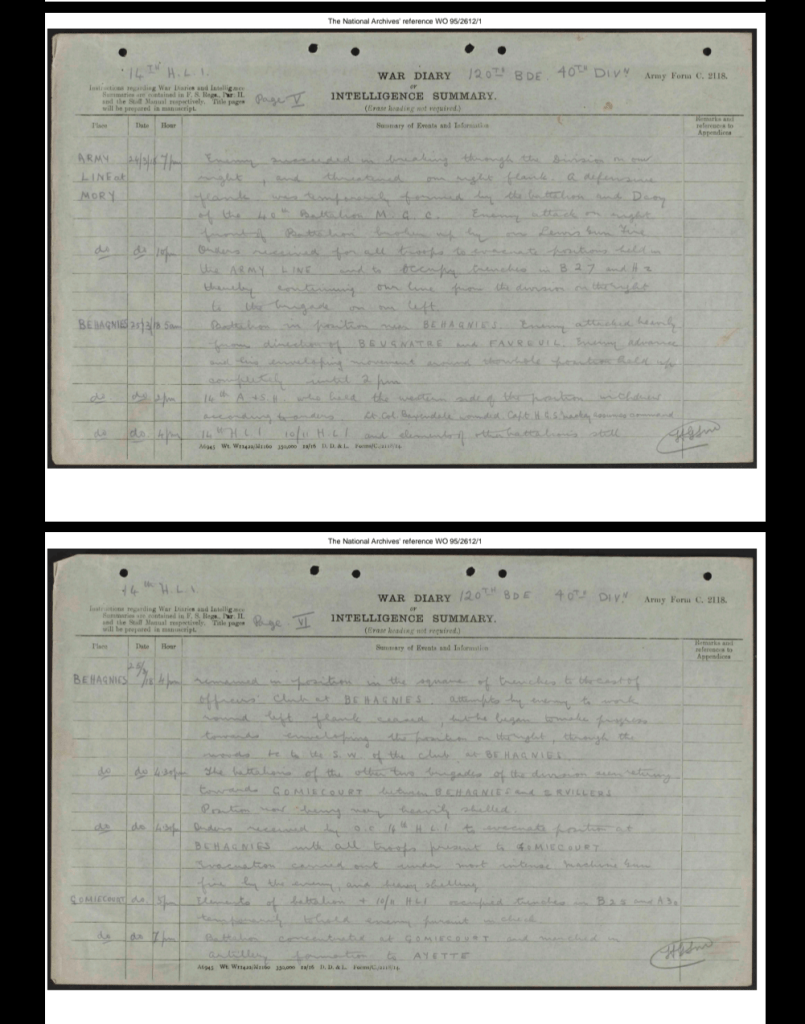 The 120th Brigade diary is perhaps best to gain an overview. WO95-2610 refers: