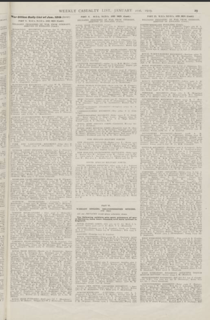 Records show that Walter finally returned from captivity to England on January 18th 1919.