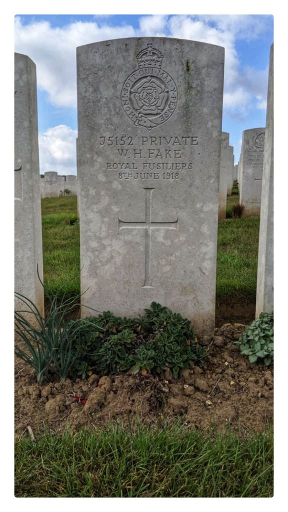 Will Fake is one such soldier, and although I’ve discussed him with his descendants Andrew and Ben, who I’ve known for years, I’d not got round to writing about him. It’s also the season of remembrance so there’s never a better time to put faces to the names carved on the white stone memorials, soon to be adorned with poppy wreaths.