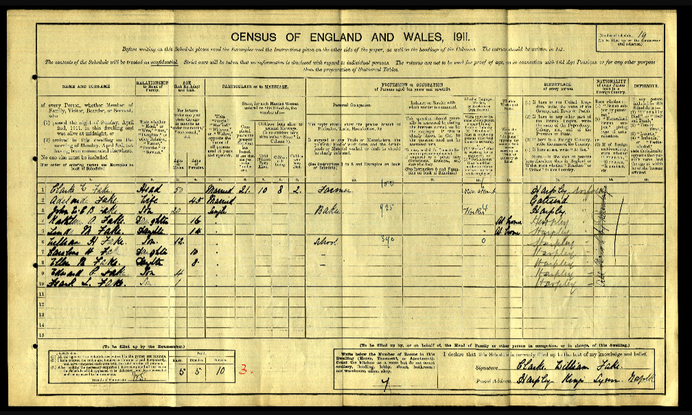 You can see from the 1911 census that the family had expanded, and life would have been pretty ordinary for lads on the farms of west Norfolk in the years before war came calling.