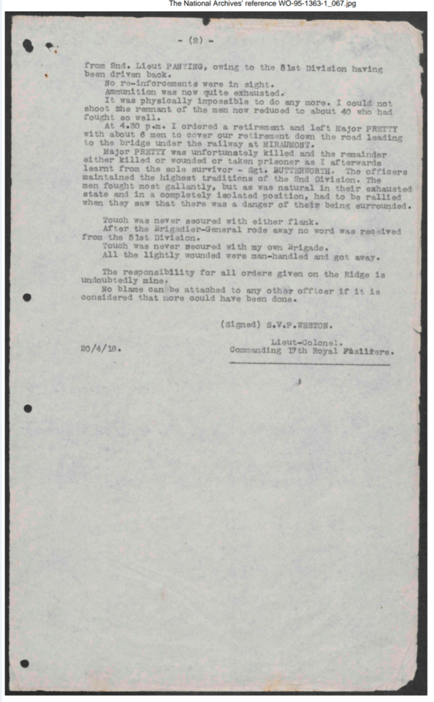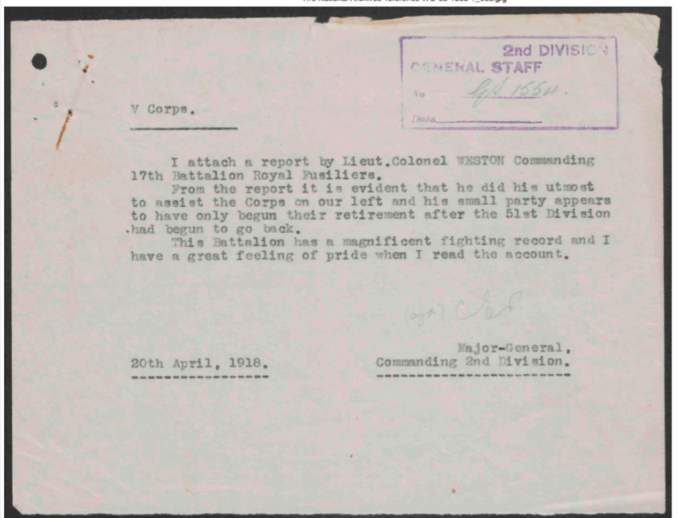 I won’t go into detail about the chaotic scenes and precise movements of the 17th, but below I’ve included a report which is one of the more remarkable ones I’ve read of any unit.
