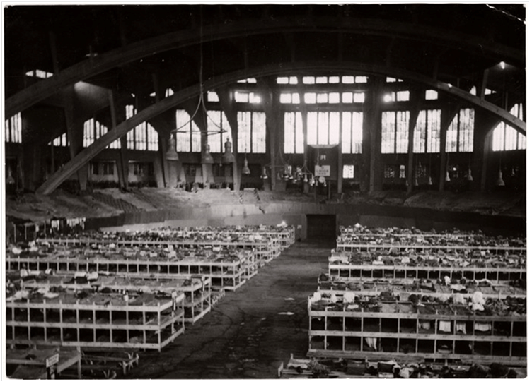 In 1940, the camp was held in the oval part inside the Exhibition Center. The prisoners slept in three-person bunk beds.