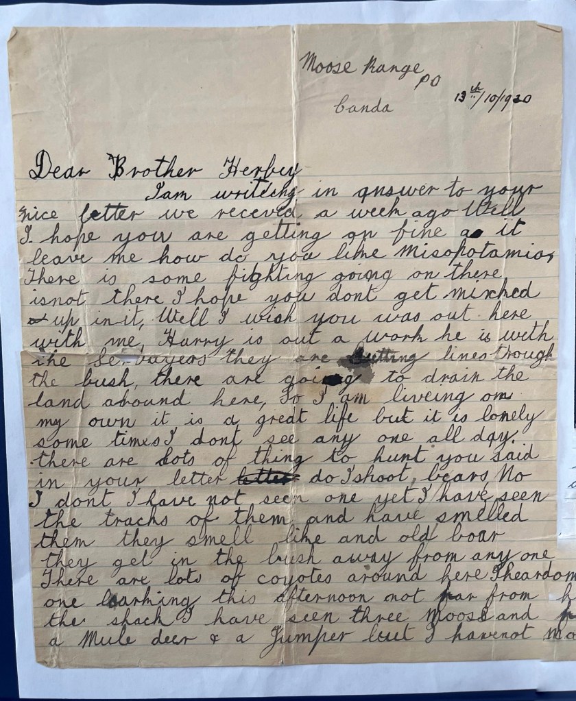 When Fred put pen to paper on 13th October 1920 in reply to a letter from his brother received a week earlier, and posted his letter at Moose Range, Saskatchewan, he was unaware that Herbert had already been declared dead almost two months earlier. Such was the delay in international postage and the remoteness of their respective locations, it seems likely that it would take two months for correspondence to travel halfway round the world.